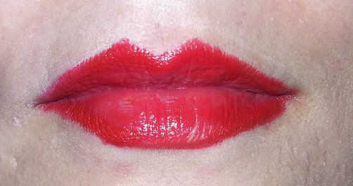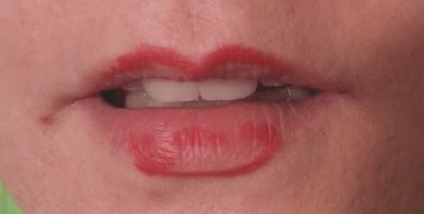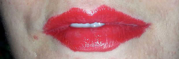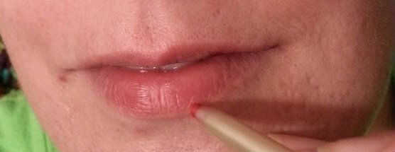 Línea de tus labios con delineador de labios rojo, comience dibujando una curva en su labio inferior y la traza las curvas en su labio superior. Rellenar con lápiz labial.