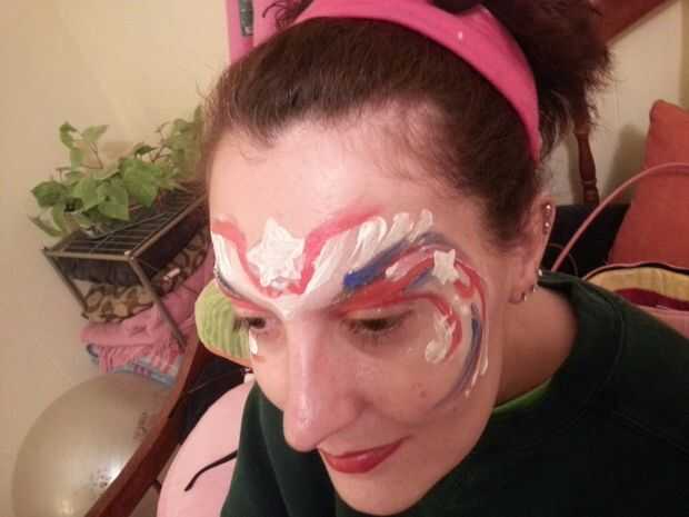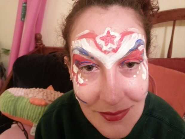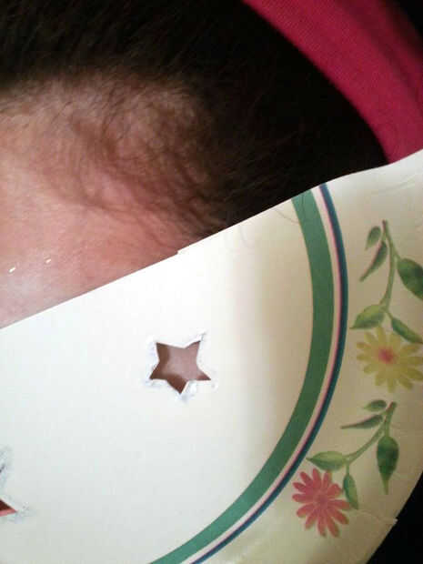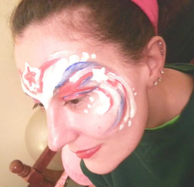 Puede utilizar su plantilla de estrella para añadir acento estrellas en la frente y a ambos lados de los ojos. Oprima la placa hacia abajo firmemente, stipple pintura sobre la plantilla y levante suavemente.