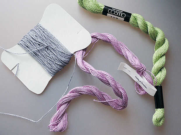 Es muy fácil, así que lo más importante es elegir hilos encantador. Elegir colores diferentes (o iguales) de cada puntada. Yo uso 3 diferente color hermoso sueco lino hilos de rosca.