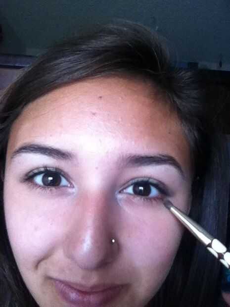 Usar un color del oro y la manzana una pequeña franja de debajo de los ojos con el pincel. Esto agrega un pop bastante oro a los ojos!