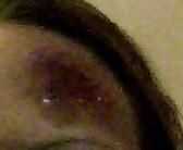 Usando blush brocha aplique una buena capa de sombra de ojos roja sobre avena seguido por una ligera capa de sombra de ojos negro.