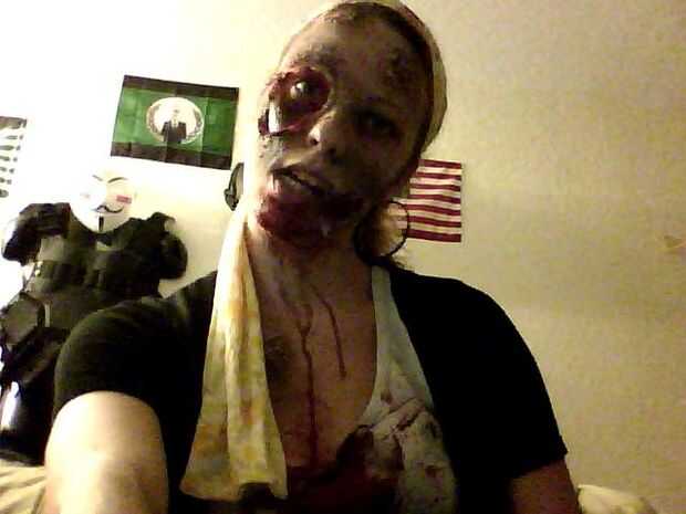 Con sangre preparada, aplicar en las heridas de los ojos y boca, así como hacia abajo de la barbilla y el cuello. Ser generosa ya que seca rápidamente.