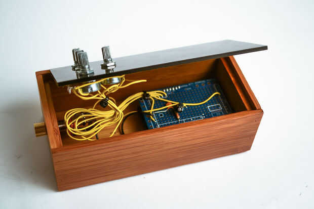 He hecho esta caja para explorar las consecuencias de cambiar los diferentes parámetros en las piezas. Esto me permite ver cómo efecto las cualidades del sonido en general y me permite nuevas composiciones de prototipo. Los diferentes parámetros se modifican a través de los 4 potenciómetros. Un potenciómetro para elegir según actual y los otros potenciómetros para cambiar los parámetros de la misma. Aunque los sonidos pueden ser considerados crudos, bastante se dedica a experimentar y jugar con.