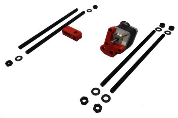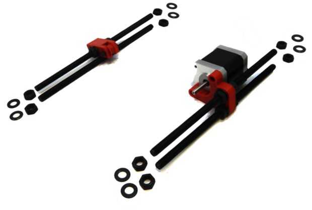 Necesita: cuatro barras de 8 X 205 mm roscada, catorce M8 DIN-125 clase 6 arandelas, las tuercas de la clase 8 de catorce M8 DIN-934, el motor del eje Y y el tensor de eje Y.