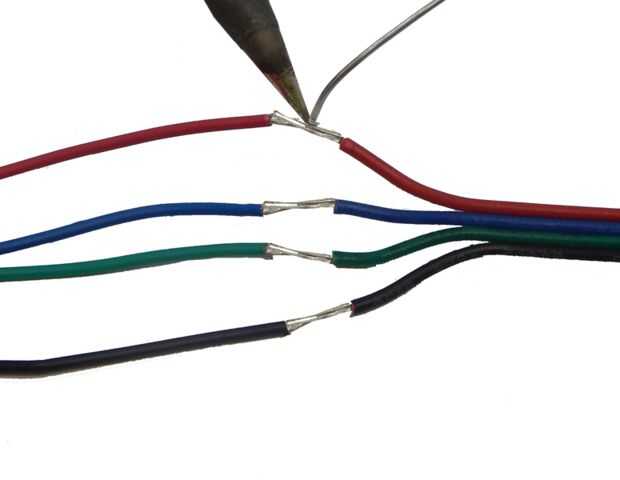 Necesita: cuatro motores de la Nema 17, soldadura de hierro, tubo, un archivo, pinzas y cables del encogimiento del calor.