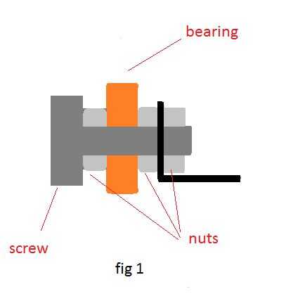 -Añadir los rodamientos, tornillos y tuercas a los ángulos de deslizamientos (fig 1)
