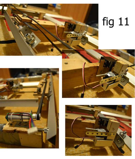 -fig 9 y 11 muestran la posición de los motores de DC y de los Servos. Para el diseño de la figura 10 también he utilizado algunas piezas de Mecano. Puede improvisar en esta parte si no tienes.