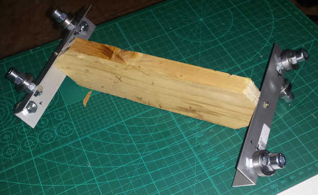 -cortar un trozo de madera (24 cm x 6 cm x 2 cm) y hacer que los extremos de la misma puntiagudos como en la figura 2. Arreglar como hacer agujeros fig 7 y utilizando algunos tornillos con el fin de lograr que permanezca en solución (Fig. 6, Fig. 7)