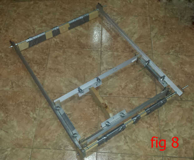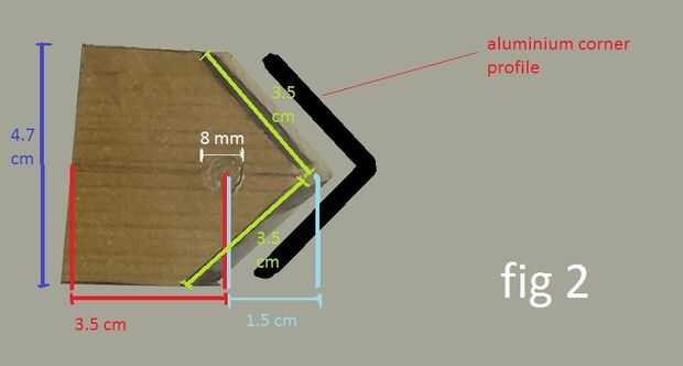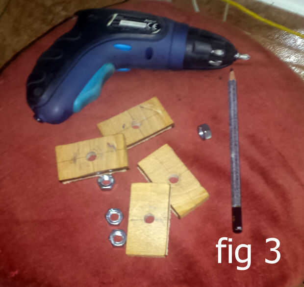 -cortar 4 piezas de madera (2cm de grosor) y perfore un orificio de 8mm en él en posición específica (fig 2)