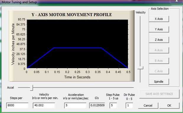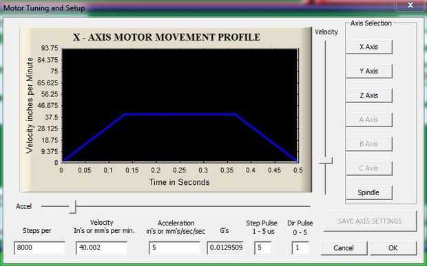 29. usted necesita calibrar a máquina. Cada uno será diferente, dependiendo de su grado de motores por paso y el tamaño y número de hilos de rosca de la varilla. Pongo capturas de pantalla de todos los ajustes que utilicé en el Mach 3.