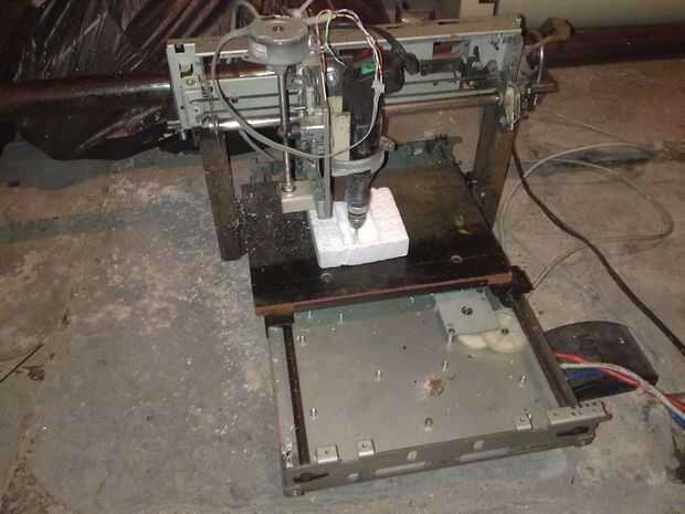 me interesé en máquinas CNC, poco después de ser abandonado por una firma de impresión 3D en el Reino Unido. Intrigado con los esfuerzos de reprap, he decidido que tener una wizzing de taladro-como la herramienta alrededor en tres direcciones sería un blanco fácil para alcanzar. Hice mi investigación y terminó golpeando a una pequeña máquina, usando un escáner antiguo, un carro de la impresora antigua y un obsoleto reproductor de CD. He aprendido de la experiencia y utilizado con el siguiente objetivo: crear una máquina CNC de 3 ejes grande, capaz de trabajar a máquina de espuma de poliestireno. Posteriormente se puede cubrir la espuma trabajada a máquina en una capa protectora (ej. agua basado en látex), antes de tirar un mould(ing) fibras compuestas de él.