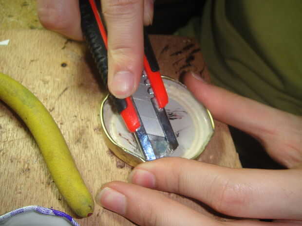 Obtener un pulgar oficina tack y hacer un perforado hacia fuera del agujero.