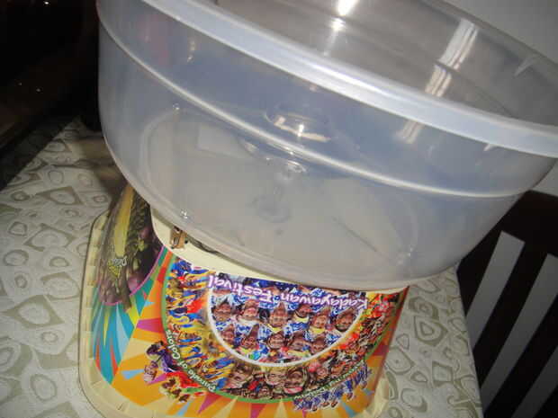 Para utilizar este hervor de máquina azúcar en una cacerola Coloque el azúcar licuado en el centro de la ruleta.