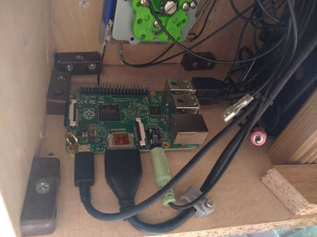 Se montaron todo dentro y en la parte inferior del gabinete. He dejado suficiente espacio (apenas) de una memoria USB actualizar ROMS etc,...
