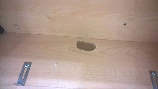 De alguna manera, logré recordar perforar un agujero más grande para vga, altavoces y cables de alimentación caber a través.