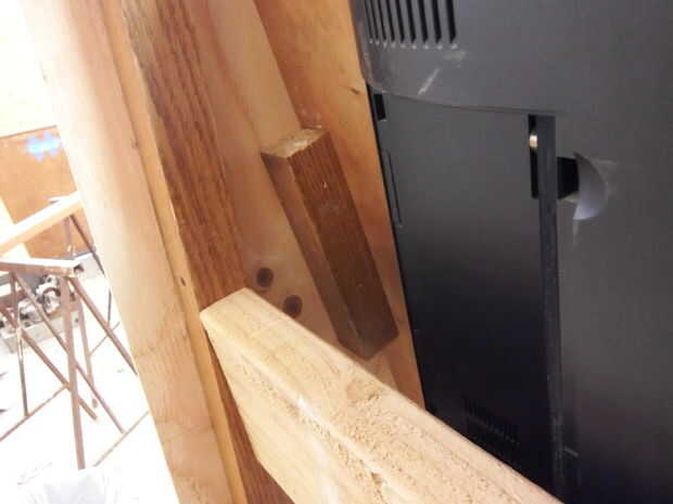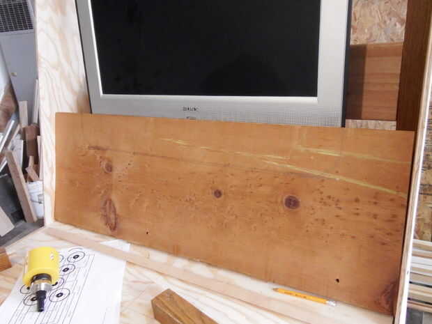 En primer lugar, la 11 "X 1" pieza de madera fue cortado para encajar la parte inferior de la TV. Se trazó una línea alrededor de la TV y entonces el agujero más grande vio disponibles se usó para crear el radio del corte y se utilizó una sierra de calar para recortar el resto.