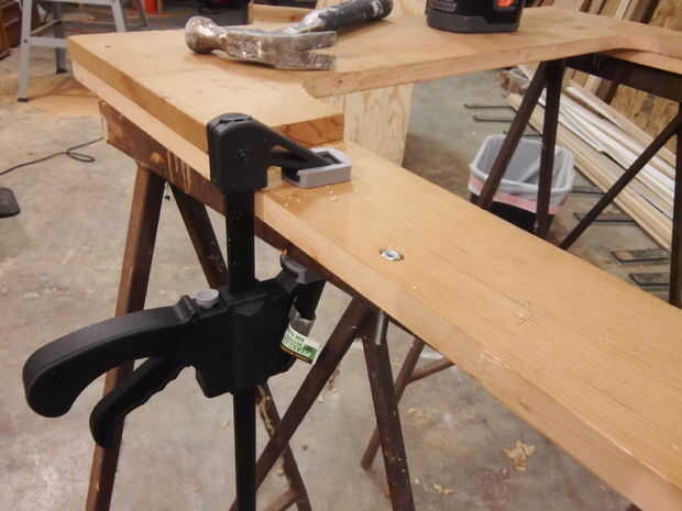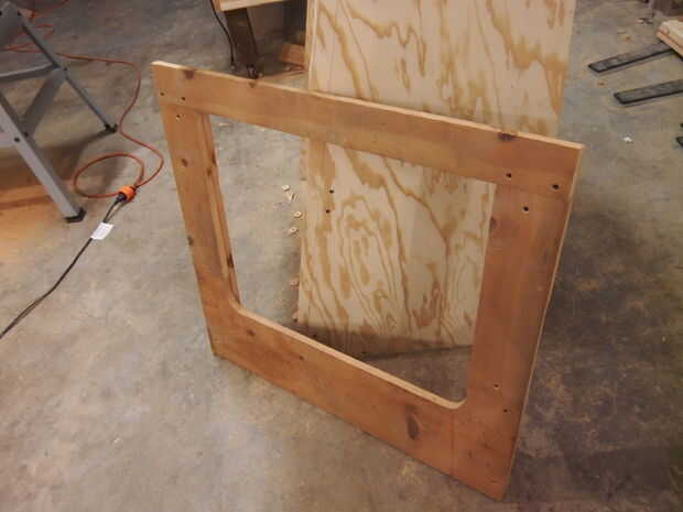 Hemos querido hacer el bisel desmontable, por lo que cortar 7.5" largo de 2" X 2" madera para tornillos y tuercas de mariposa y había les había montado en la parte posterior del bisel mientras las pinzas lo eran agujerear para arriba. Las piezas laterales de la luneta se retiraron y luego luego fueron taladrados previamente agujeros y contador hundido para las piezas superior e inferior. Había atornillado a través de los orificios avellanados y luego colocar el bisel hacia atrás en el gabinete y taladrar el orificio de 1/4" a través de la luneta y de 2" X 2" para el perno de retraso. Nosotros entonces equivalente al lado de bisel de 1/4" agujero con una broca de pala de 3/4" para el perno de retraso ser empotrado en la madera. Unos pequeños frutos secos fueron utilizados para sostener el perno de retraso hacia abajo en la cavidad escariada. Luego se unieron los lados del bisel, que cubre el agujero del tornillo de lag.