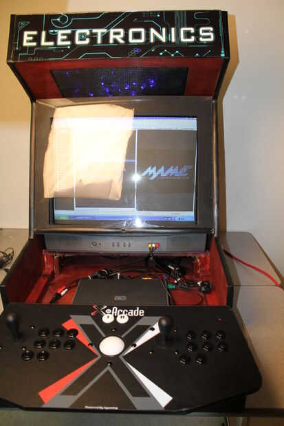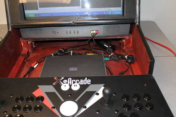 El panel arcade es el controlador de palanca X-Arcade del tanque (si usted no ha averiguado todavía TankTop se deriva de palo de tanqueytapade la barra. ¡ Sorpresa!).