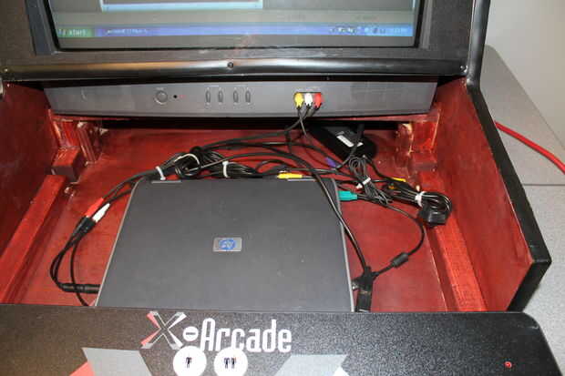 El secreto está hacia fuera! ahora todo el mundo sabe lo que alimenta el núcleo del neutrón del gabinete Arcade TankTop! Sí, su un viejo portátil AMD XP. pero para nuestros propósitos, funciona muy bien.