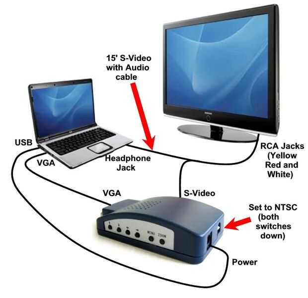 Para los ordenadores portátiles más recientes (Windows Vista & 7) puede utilizar VGA o HDMI. Ambos escenarios requieren una caja especial para convertir a RCA, pero son relativamente baratos (15-40$).