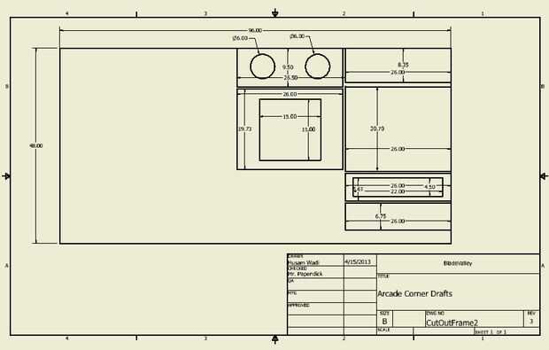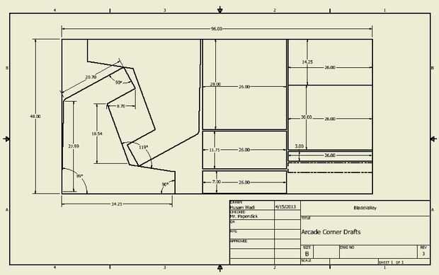 Estos son los planes para el arcade con esquinas afiladas. Las esquinas agudas son más fáciles en la corte, alineación y montaje del gabinete arcade, pero son TERRIBLE de T de moldeo y acabado del gabinete.