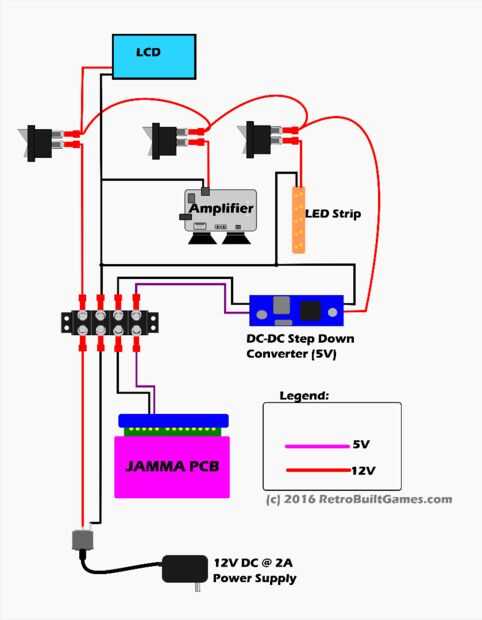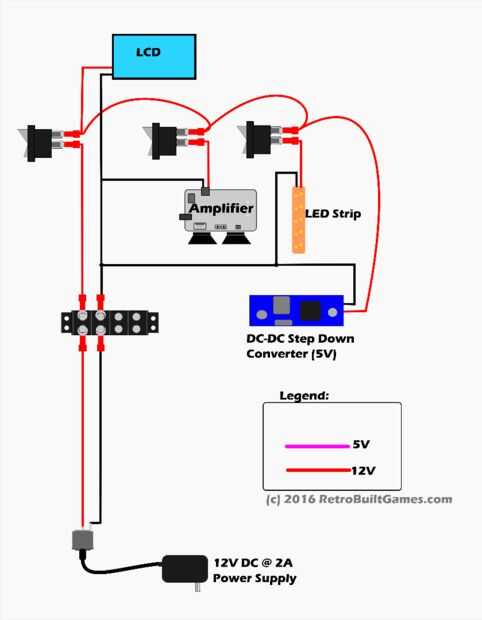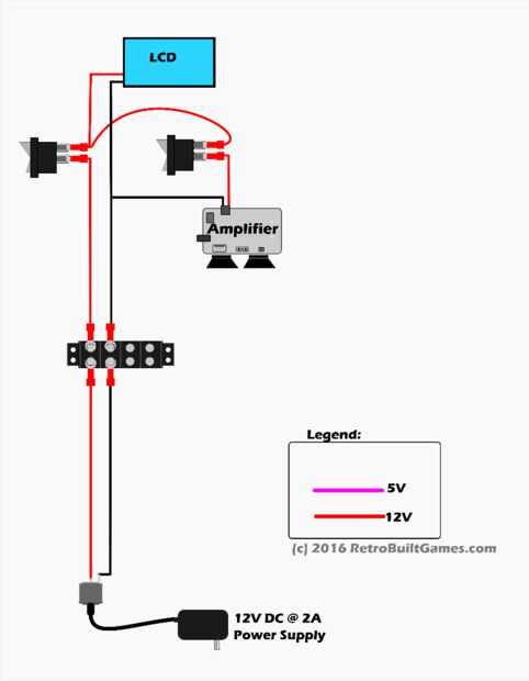 Me di cuenta después de publicar el video que el circuito de alimentación puede ser difícil de envolver su cabeza alrededor. Definitivamente puede simplificar usando simplemente un interruptor. Sin embargo; Si lo prefiere mi solución sobre-diseñado, proporcionó un desglose paso a paso de cómo construir el circuito. La primera foto es el 'cableado' que hice que controles el poder de todo el gabinete. Esto es lo que necesita para ser fabricado y conectado a los componentes individuales. Descomponerlo en pasos a partir de poder entrar en la máquina y agregar cada parte (LCD, amplificador, contraluz, PWB del juego) uno por uno.