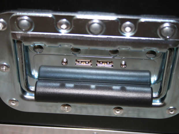 Opcional: Estaba preocupada sobre mantenimiento en el equipo, consiguiendo el equipo por tener que tomar el panel de control de cada vez sería una molestia enorme. Así que tiene a un conector USB y había conectado a uno de las manijas empotradas. Hice los agujeros rectangulares por perforación y dar forma con un pequeño archivo.