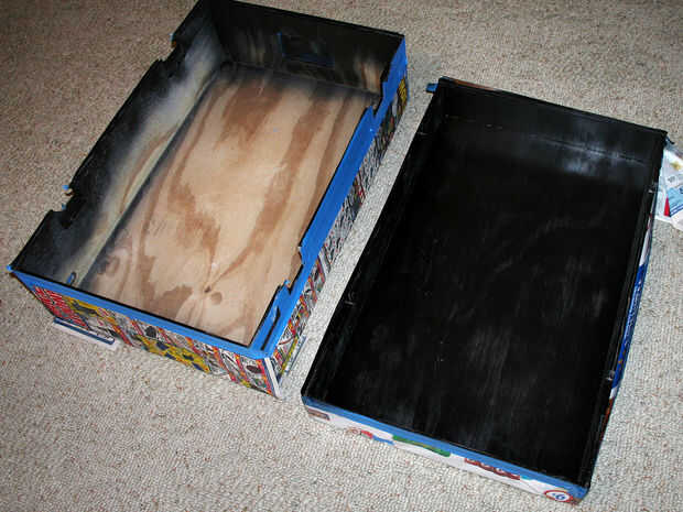 Después de la caja, enmascarar y pintar el interior de la tapa y nada que puede ser visible en la mitad inferior una vez que todo está montado.