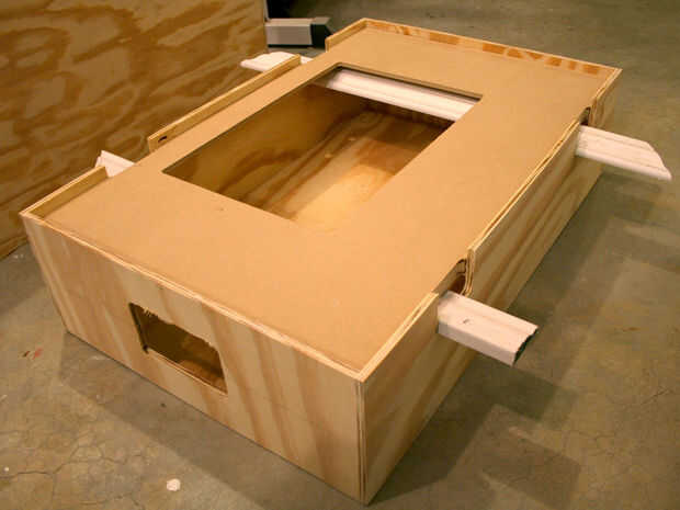 Para el panel de control he utilizado 3/4" MDF, como quisiera tener algo de fuerza extra para sostener el monitor y el grosor extra para poder utilizar los tornillos de alta resistencia para asegurar al monitor soportes. Hice un corte áspero para el panel de control con la sierra caladora y limpiar los bordes de sujeción el borde recto de una tabla de desecho en el panel como guía para la fresadora con la broca de recorte al ras. Usé este mismo método para la ventana de monitor.