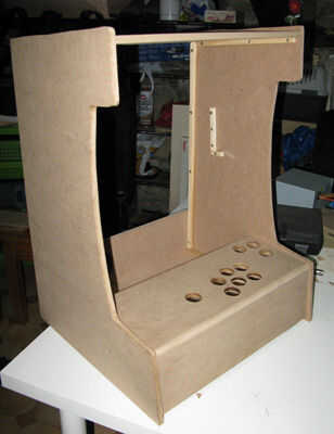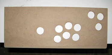 Hacemos la madera donde irá el joystick y los botones (hay multitud de esquemas y diferentes estilos), yo elegido el modelo de CAMPCON de 6 botones, y le añadido otros tres uno o dos jugadores y proceder. La ponemos en su sitio con bisagras ya el tamaño tenemos es muy pequeño y así podemos acceder al cableado. En las fotos lo vemos abierto y cerrado.