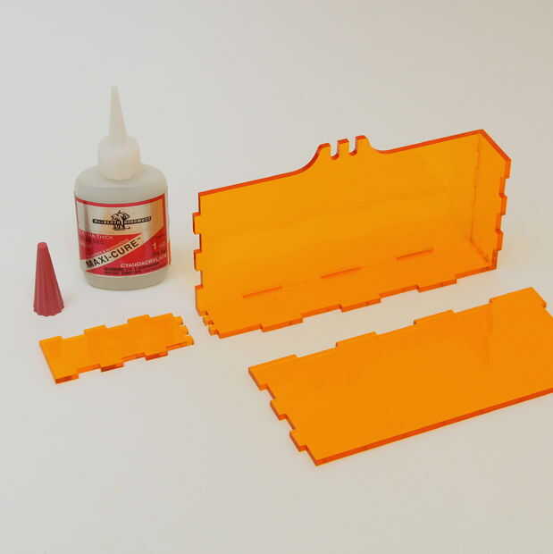 Mina fue dibujado en Alibre Design y luego se fueron sumando las fichas usando una versión beta de placa 123d que esperemos que pronto estará disponible como parte del 123d. I entonces cortar en 1/8 acrílico y láser utilizado super pegamento para mantener Unidas. Para impermeabilizar las juntas funcionó una línea de cinta de embalaje transparente abajo del exterior. También incluí en el diseño ranuras elevadas sobre el canal para montar mi servo. Pegamento caliente habría funcionado muy bien!