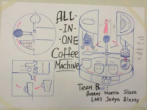 Hola 'Instructables' ! Bienvenidos a un equipo internacional de Alemania y Rusia. Nuestros nombres son: Andrey, Lars, Alexey, Martin, Slava y Zhenya. Todos caemos en amor con mecánica y electrónica, estamos aprendiendo en las universidades técnicas. Y todo el amor café! Por lo tanto, en la escuela octavo Fab Lab Polytech decidimos hacer la máquina de café!