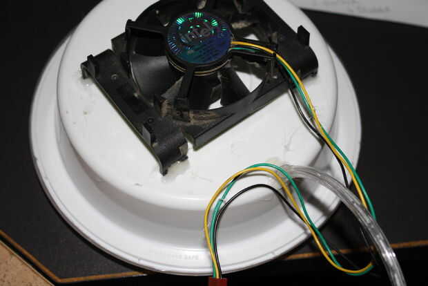 Pegar la cabeza del eje del ventilador. Tener mucho cuidado aquí como usted necesita para obtener había centrado así cualquier cantidad de centro y va a tambalearse y agitar y no funcionan bien.