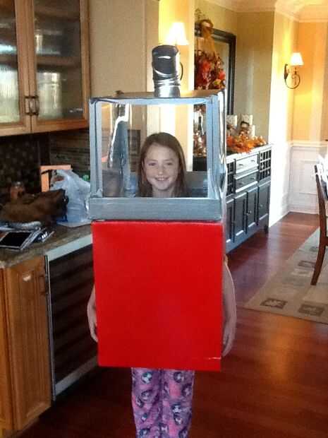 Primer paso - encontrar la caja del tamaño adecuado donde ella puede caber su cabeza y brazos.  La caja entonces fue pintada de rojo brillante.  A continuación encontrarás materiales para la parte superior de la máquina.  Utilizamos el plástico duro de fotogramas de póster.  4 de las personas con alguna cinta aislante y tiene su parte superior.  Sin embargo, también necesitamos una abertura en la parte superior donde la gente podría poner el caramelo en puesto que ella no puede tener una bolsa de Halloween.