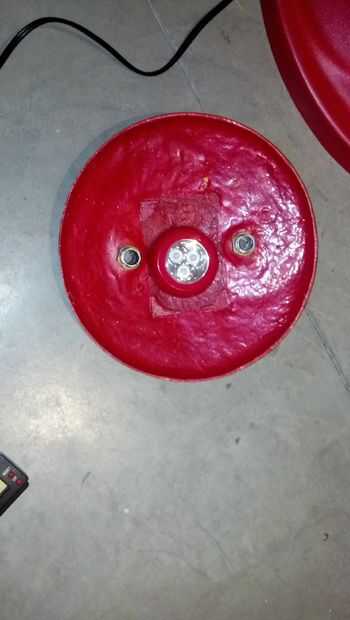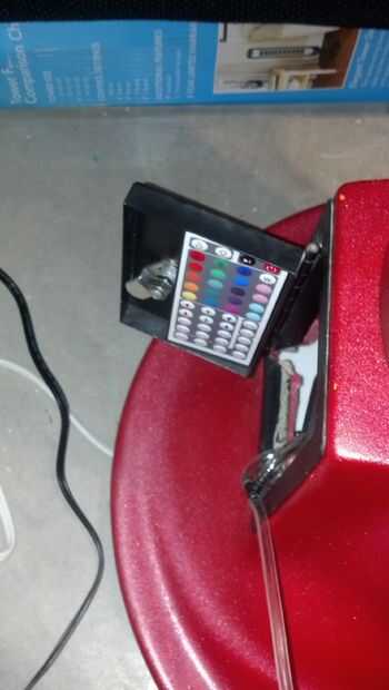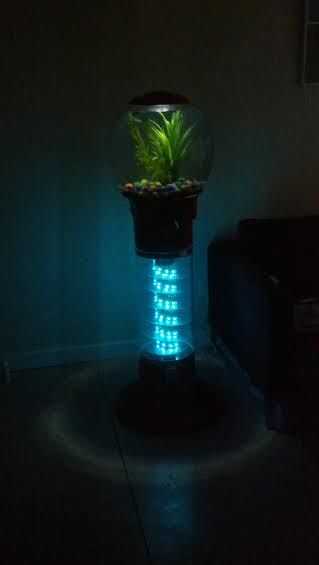 Utilicé color cambiar LED luces de cuerda envueltas alrededor de la base para hacer la pieza pop. Que cambian de color automáticamente (o se pueden establecer en un solo color). Son controlados por un control remoto IR. Taladré un agujero en la fibra de vidrio para el sensor de infrarrojos. Todos los acordes, controladores y enchufes de las luces son hacinados en la base con la bomba de aire y filtro. Únicamente un cable de alimentación debe correr hacia la parte posterior.