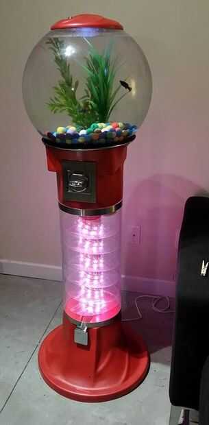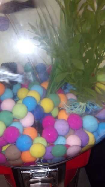 Para decorar, yo quería que se vea tanto como una maquina de chicles como sea posible. He encontrado que algunos 1" diámetro surtidos granos coloreados en línea que he añadido como un sustrato de acuario para ver como los peces nadan alrededor en chicles. Asegúrese de que si añades los granos que tienen una densidad mayor que el agua, por lo que se hunden y que no son tóxicos para los peces. (También, usa uno de esos granos para hacer una manija para la puerta de atrás cuando la cerradura era)