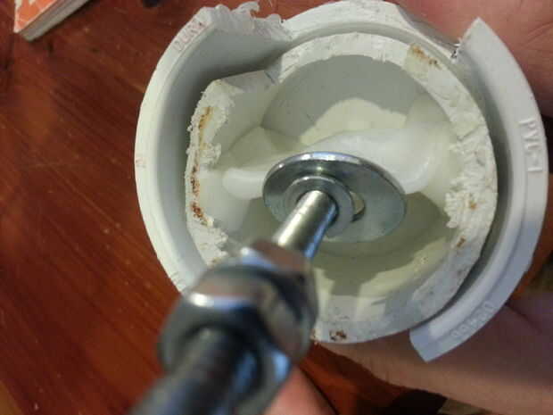 Shapelock es impresionante. Es el plástico con una temperatura de fusión baja. Esto le permite poner en una taza de agua, ponerlo en el microondas, luego se puede formar en lo que quieras. Una vez que se enfría es difícil y puede ser perforado, pintado, corte, etc.. Utilizamos esto para varias piezas en el interior de esta máquina de gumball. Por ejemplo hice un borde de plástico alrededor de la tapa de PVC para el surtidor por lo que pude lo atribuyo a la cartulina. También la usé para la manija.