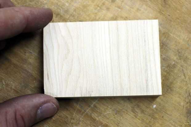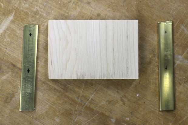 Comencé cortando el madera en blanco a aproximadamente 2" de alto por 3" de ancho. El espacio en blanco fue molido para que coincida con el espesor de la placa de bronce, que era 1/2" de grosor.