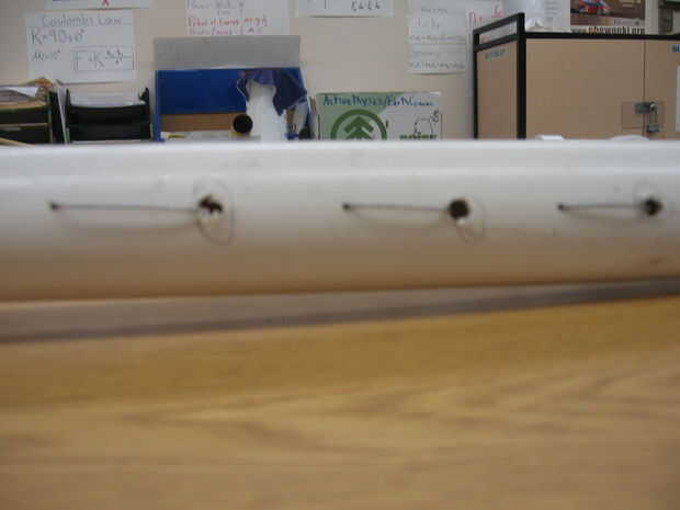 Del hilo de rosca y atrás, tirando tan apretados que puedo (yo usé un par de pinzas para obtener un mejor agarre). Esto le dejará con serie de alambres paralelos (que se verá algo parecido a un arpa). Ate el alambre en el otro extremo.