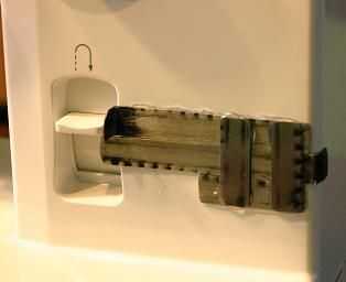 así que la cantante decidió que la promesa debe tener un interruptor momentáneo para control movimiento adelante/atrás. No tienen idea por qué pensaban que esto era apropiado - conduce a menudo, especialmente cuando se trabaja con materiales resistentes como las correas, me trata de hacer cuatro cosas a la vez: sujetando el hilo, guiando los materiales, manteniendo atrás y girando la rueda de mano.