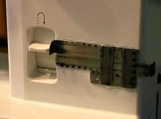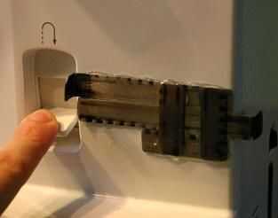 Por lo tanto, un seguro, para hacer el cambio en un palanca adecuado. Pero un estilo de pestillo traba, así puedo deslizar el dispositivo fuera del camino en caso de desee un interruptor momentáneo.