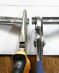 Luego, romper el metal en trozos con pinzas, como se muestra y moler a los perfiles ilustrados. Usted querrá desbarbar con cuidado todo lo posible para que sea suave.