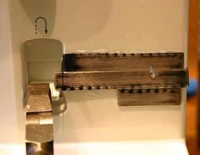 3. "Tachuela" del perno en la posición que quieras que sea presionado el interruptor de palanca, utilizando un poco de pegamento caliente.