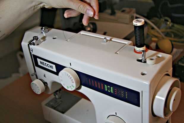 Una máquina de coser de puntada es diferente de una puntada cosido a mano. La puntada de la máquina consiste en dos hilos, uno a cada lado del material a ser cosido, que lazo alrededor de la otra para hacer una puntada. Así una máquina de coser tiene dos hilos, el uno principal visible encima de la máquina y una más pequeña bobina de hilo que se ha ocultado dentro.