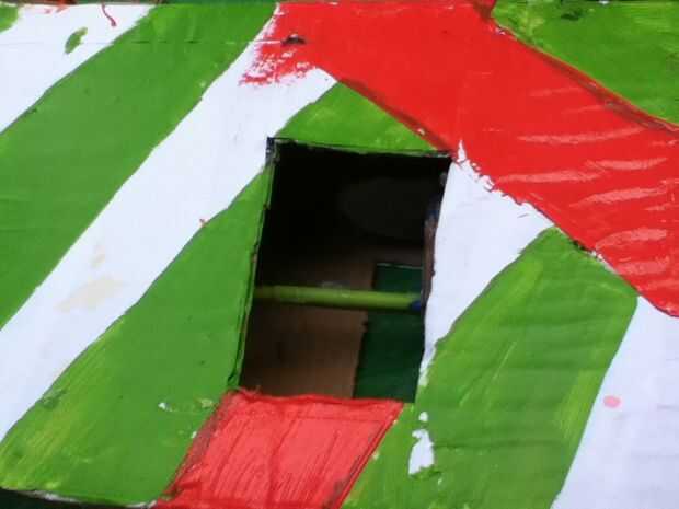 La máquina verde es una frambuesa Pi movimiento lineal máquina diseñada por SlyScience para rociar de seguridad claro fluorescentes los tubos un color específico para iluminación especial FX, una empresa de fabricación de filtro de color personalizad