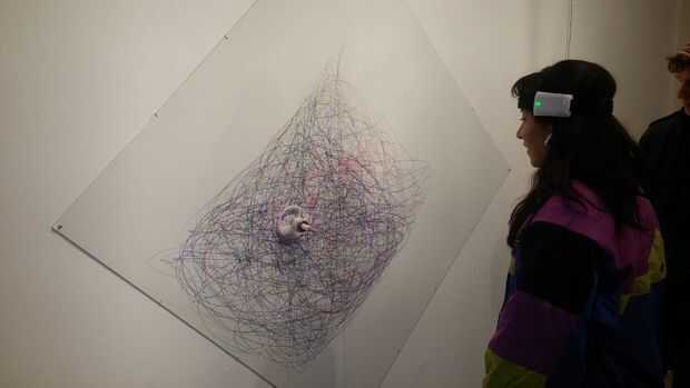 Esta máquina se basa en la polargraph por Euphy. El software polargraph es una gran aplicación para archivos de imagen diferentes de transferencia en dibujos de máquina de rasterizado. Esta versión de la máquina utiliza la librería de Arduino cerebro a data acaso de un controlador de Mindflex. El Arduino entonces mueve a cada motor en un patrón sinusoide partiendo de la entrada desde el analizador de ondas cerebrales.