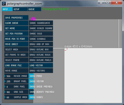 Algunos de los controles son sólo para hacer con el controlador (como la imagen de carga), pero algunos (como el conjunto de casa o hacer pixel) envían comandos a la máquina. Algunos de los controles son Hilanderos de número, haga clic y arrastre hacia arriba y hacia abajo en ellos para cambiar su valor.