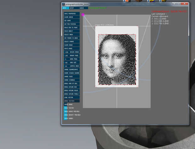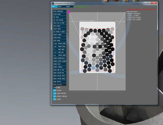 - Arrastre el cono número para el tamaño de la cuadrícula para cambiar el tamaño de los "píxeles", teniendo en cuenta que los más pequeños tardan más para dibujar (realmente son más rápidos individualmente, pero hay más de ellos).
