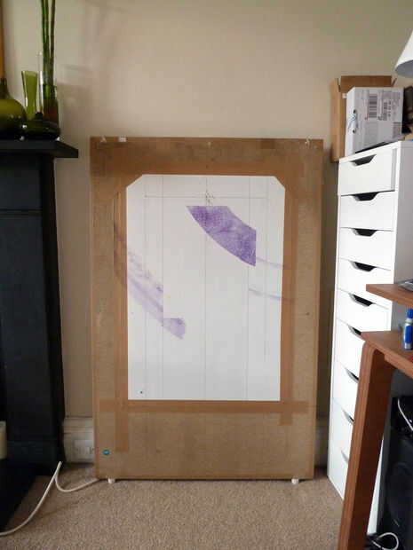 Bajé el DIY local cubierto y compactarse en el recipiente de recortes para la broca más grande conglomerado que podría caber en mi coche poco, pero también he tenido buen éxito con la construcción de una máquina basada en el mayor marco Ribba de IKEA. Esto tiene la característica adicional que se puede utilizar como un marco de imagen luego, increíblemente. Una pizarra es una buena alternativa también, porque usted puede probar rápidamente, pero va a hacer cualquier tipo de superficie plana. Mi primera era sólo lo suficientemente grande para A3 y funcionaba bien, así que no te tiene que ser masiva.