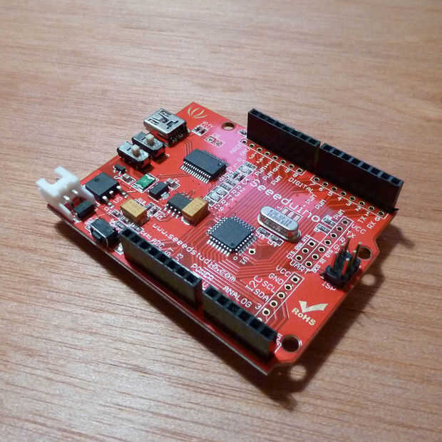 Necesita una placa Arduino UNO, utilicé un v2.21 Seeeduino aquí - hicieron el trabajo muy bien en su día, pero un par de nuevas características se han añadido al código y así no cabe en ya. UNOs genuinos tienen ligeramente más espacio para los programas.